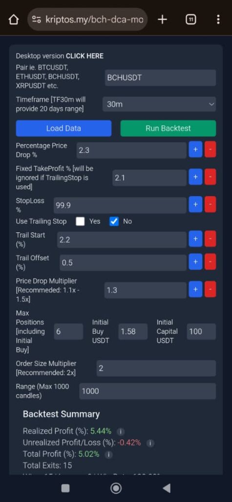 Mobile version DCA backtester has ben released